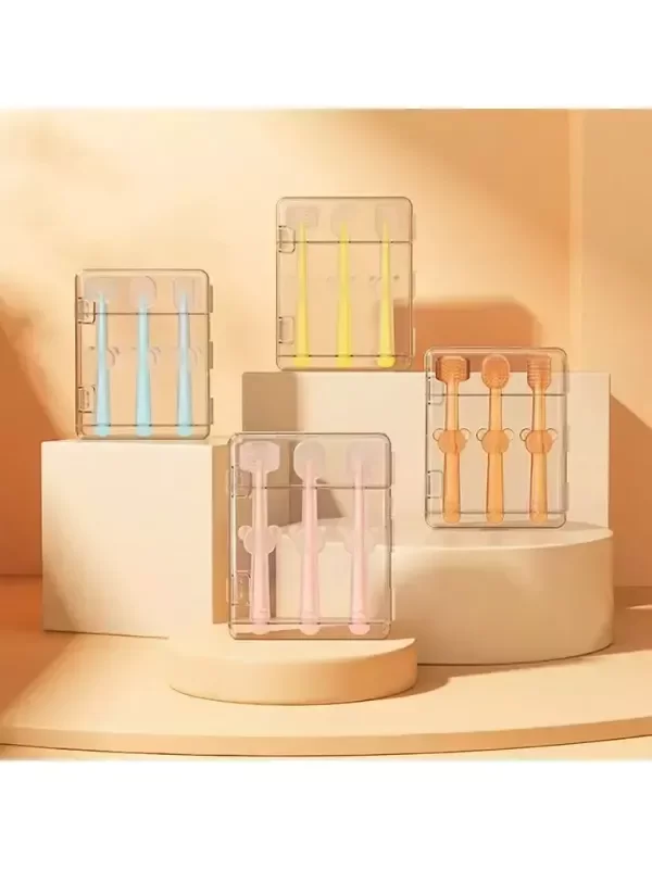 Incluye 3 cepillos para limpieza de lengua, encías y dientes.