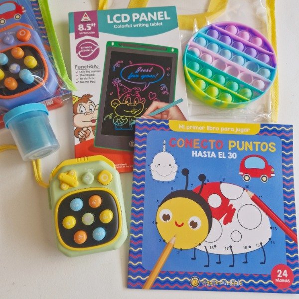 El combo que no te puede faltar en las salidas/viajes con tu peque!; Ofrece beneficios como la descarga de tensión, la relajación visual, la mejora de la concentración y el desarrollo de la creatividad.