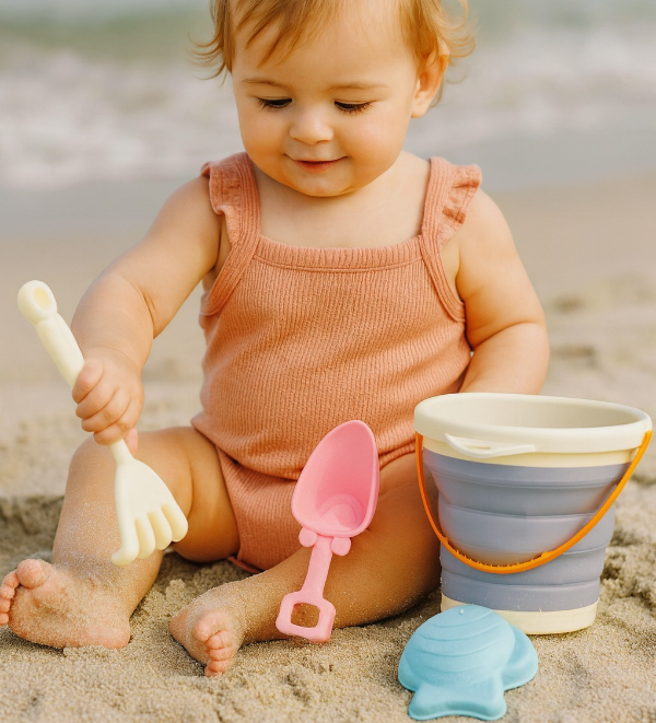 Disfruta de la playa con este práctico set que incluye un balde, rastrillo y pala! Lo mejor de todo es que el balde es plegable, fabricado en silicona, lo que lo hace fácil de guardar y transportar sin ocupar mucho espacio. Ideal para llevar a cualquier aventura de playa, este set es perfecto para que los más pequeños construyan castillos de arena y jueguen al aire libre con total comodidad. ¡Todo lo que necesitas para un día de diversión sin preocupaciones!