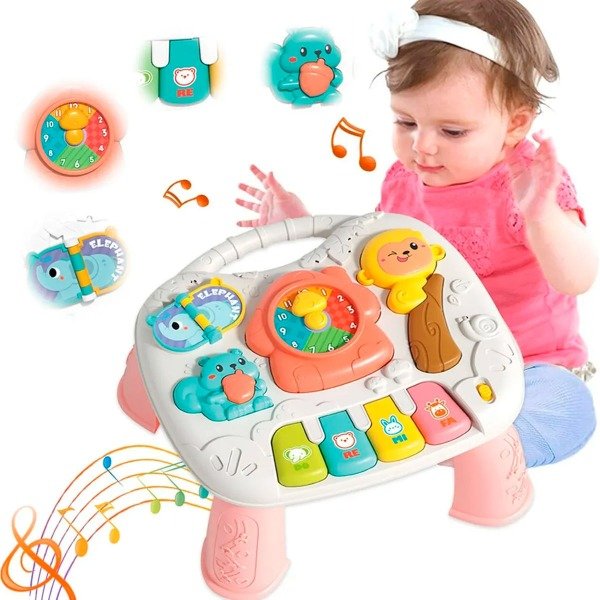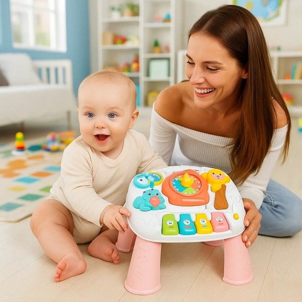La mesa didáctica 3 en 1 es un centro de actividades interactivo pensado para estimular el aprendizaje temprano a través del juego con luz y sonido.