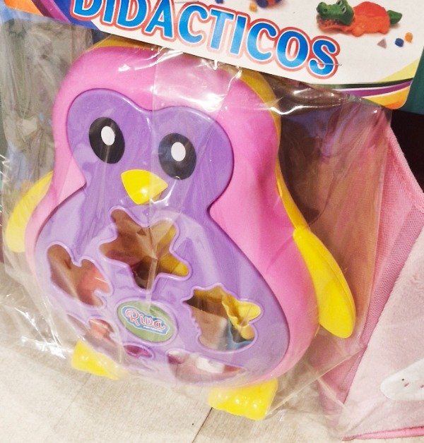 Colorido pinguino que viene con cinco piezas de distintas formitas, con temas del fondo del mar.
