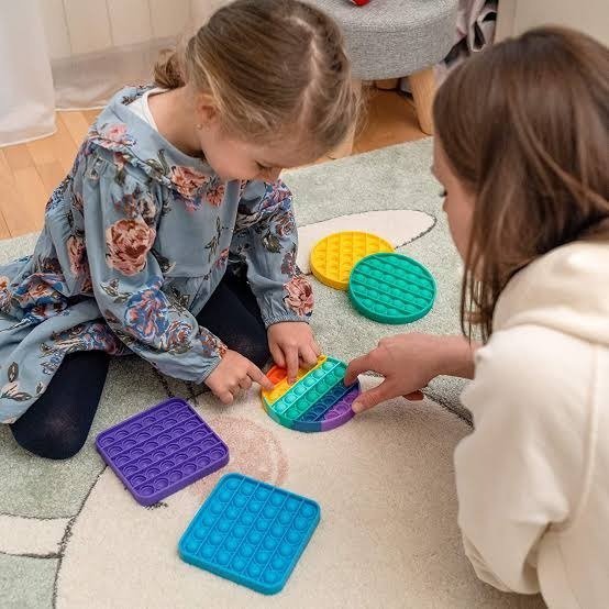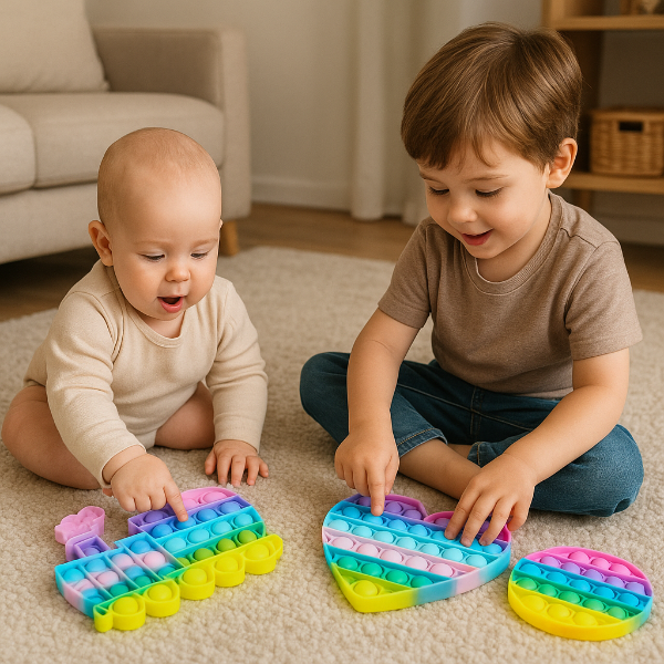 Desarrollo de habilidades motoras: Favorecen la coordinación ojo-mano y la motricidad fina, especialmente al usar los dedos para presionar las burbujas.