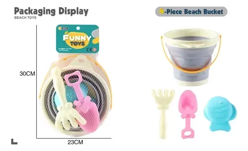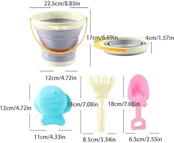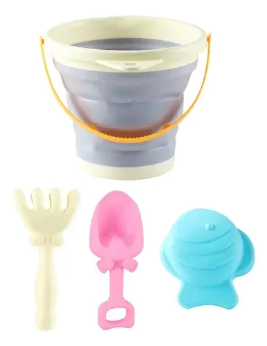 Disfruta de la playa con este práctico set que incluye un balde, rastrillo y pala! Lo mejor de todo es que el balde es plegable, fabricado en silicona, lo que lo hace fácil de guardar y transportar sin ocupar mucho espacio. Ideal para llevar a cualquier aventura de playa, este set es perfecto para que los más pequeños construyan castillos de arena y jueguen al aire libre con total comodidad. ¡Todo lo que necesitas para un día de diversión sin preocupaciones!