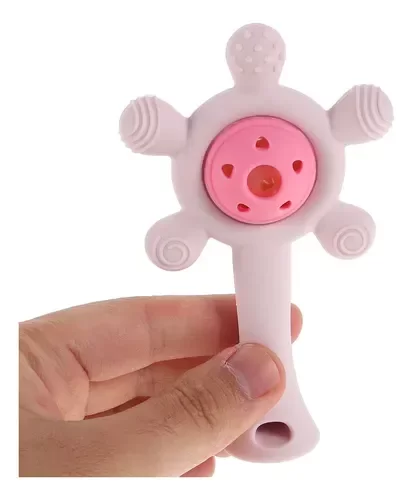 Sonajero 100% de silicona, blandito, flexible, y lleno de texturas para tu bebé.