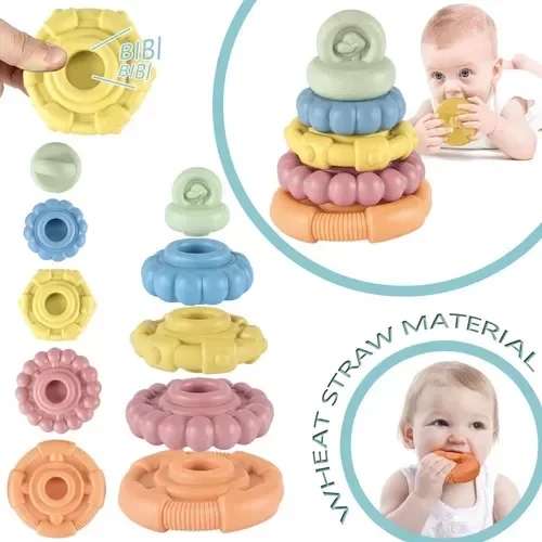 Desarrolla la motricidad fina, la coordinación ojo-mano y el reconocimiento de colores y texturas con nuestra colorida torre apilable.